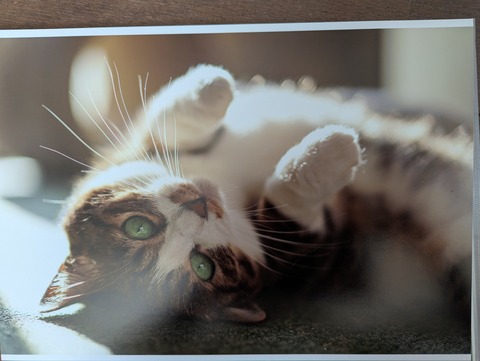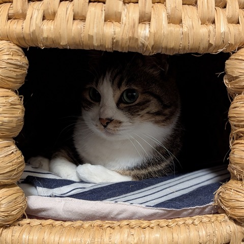 猫ベッド使ってくれるとらやんと六花亭の「ぼくの原点(ティラミス)」(とら麦44)