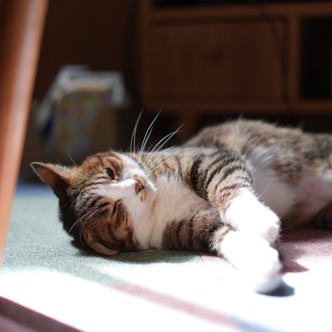 ひっくり返しながらも毛づくろいのとらやんとこの間の地震の話(猫2901)