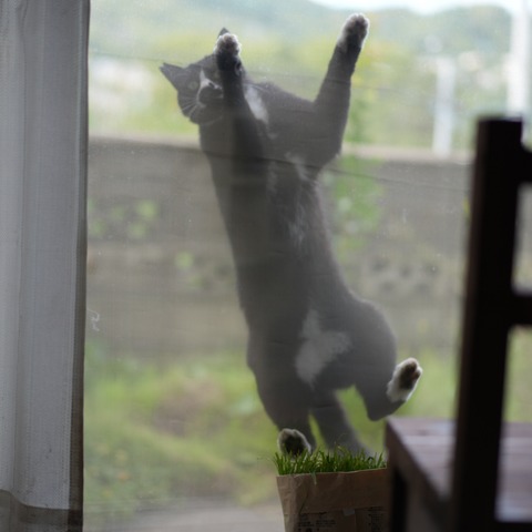 網戸登りが趣味のクロちゃんわーわーしてるうちに終わるので写真に収められることはあんまりないんずな。何とかしてシャッター切れるけどピント会って···