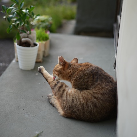 今日もまたさくら猫の麦ねぇが庭でまたーりしている。ぬっこの毛づくろい風景っていつまでもみてられる(´∀`*)ほっこりとらやんは偵察に来たのかな(;···