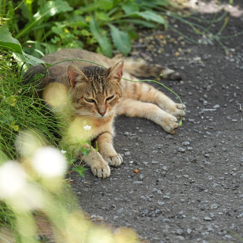 続・日陰で毛繕い麦ねぇとポケモン熱が下がった飼い主と(猫2864)