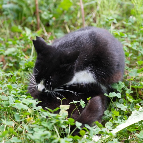 連日野良ぬっこの写真を投稿ヽ(`Д´)ノせぇい!草むらの中のクロちゃんいっつも網戸側でまったりしているのでそこにいるのは珍しい(´∀`*)おなかの毛白···