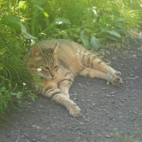 光を浴びながらゴロンゴロンの麦ちゃんとバス停のイツメンその2(猫2857)
