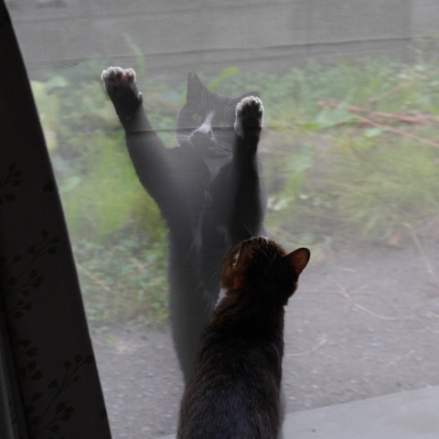 やっぱり網戸アタックのクロちゃんと六花亭ポイント消失(猫2896)