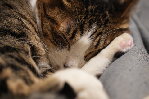 こたつの中よりこたつ布団の上の方がお気に入りらしいとらやん。いい寝顔(´∀`*)しかしその布団カバー年季が入りすぎているのでそろそろ買い替えよう···