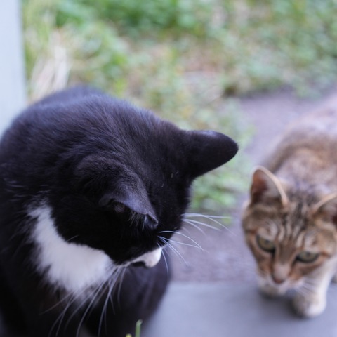 続・日陰で毛繕い麦ねぇとポケモン熱が下がった飼い主と(猫2864)
