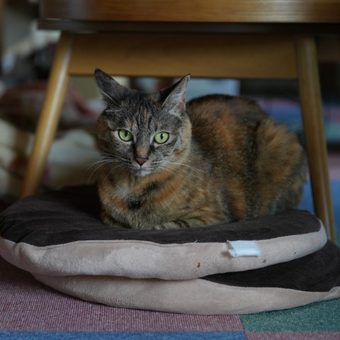 クッション二枚重ね麦ちゃんとなにがしかのアレルギーっぽい飼い主と(猫2838)