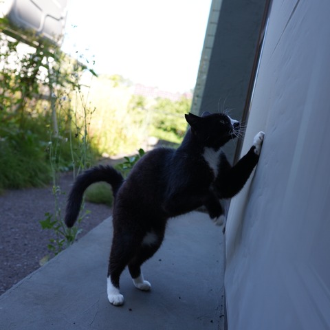 今年もあと二か月ですねと網戸登りのクロちゃんと(猫2861)