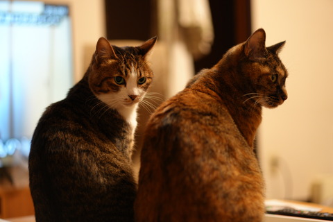 お帰りの麦ねぇとブラックフライデーのとむさん(猫2884)