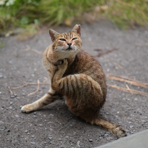 続・日陰で毛繕い麦ねぇとポケモン熱が下がった飼い主と(猫2864)