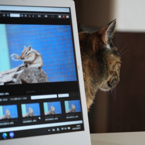 パソコン裏を陣取る麦ちゃん(猫2905)